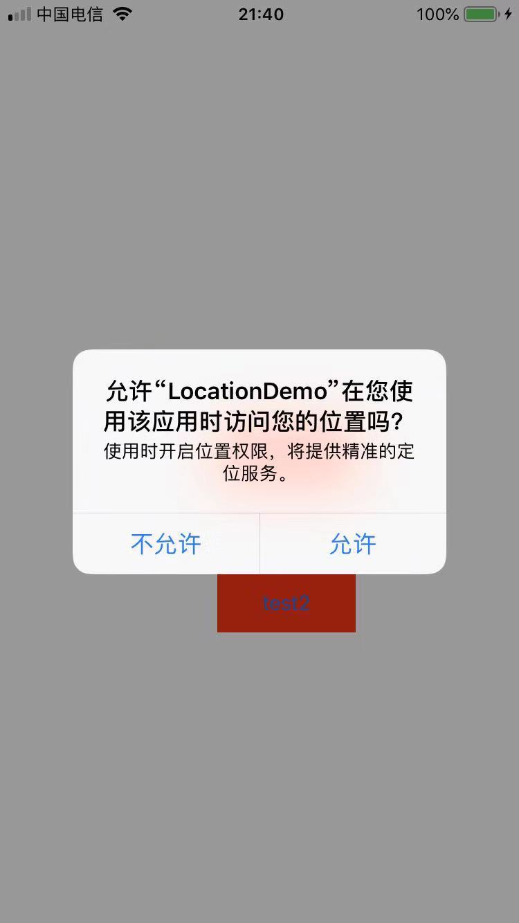 WhenInUse 权限要求必须在 plist 里配置 NSLocationWhenInUseUsageDescription,否则调用该方法不起作用。