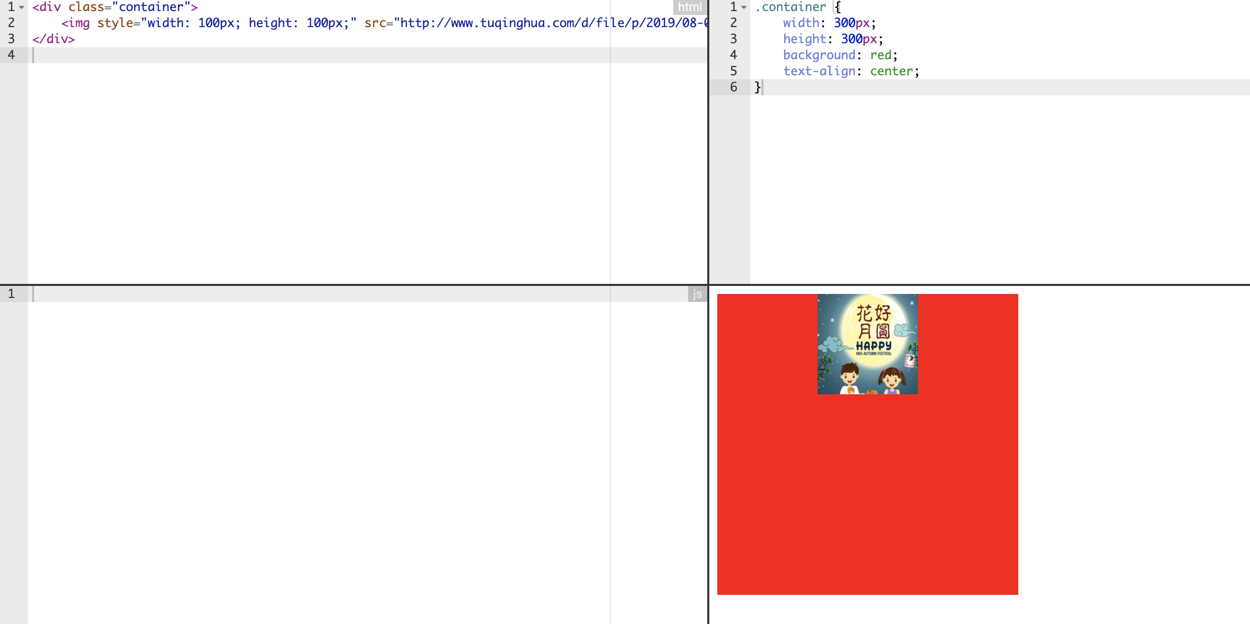.container { width: 300px; height: 300px; background: red; text-align: center; }